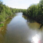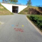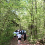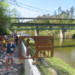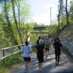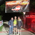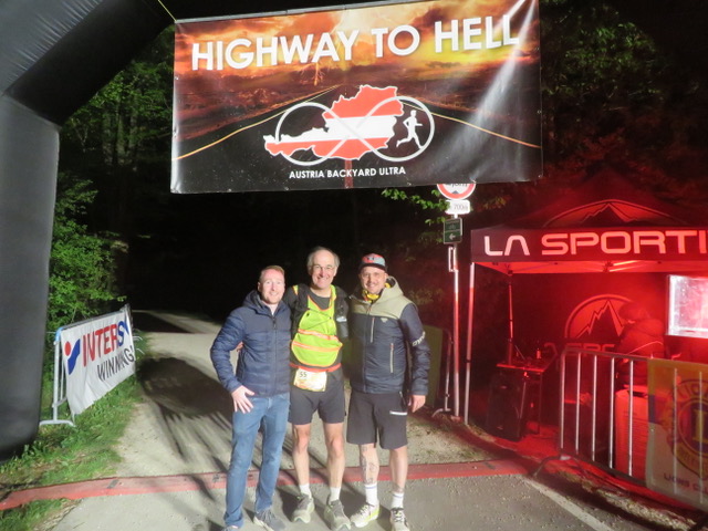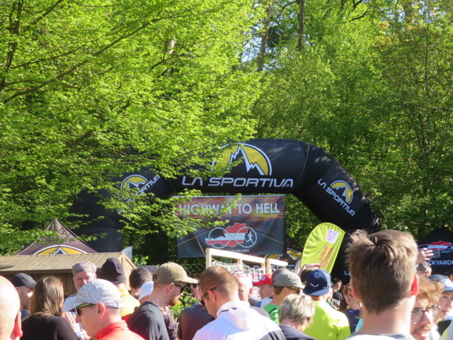 Pünktlich um 9 Uhr erfolgte der Start und unter dem berüchtigten Torbogen mit der vielsagenden Aufschrift „Highway to Hell“ und ging es unter großem Applaus auf die erste Runde. Natürlich waren wir alle schon sehr darauf gespannt, wie diese aussehen würde. Es ging sofort in den Wald und nach einem knappen Kilometer über eine schwingende Hängebrücke über den Fluss – was für ein toller Eindruck. Nur wenig wurde im Freien gelaufen, was gut war. Denn die Temperaturen stiegen doch über 20°C. Da war es im Wald schön angenehm.