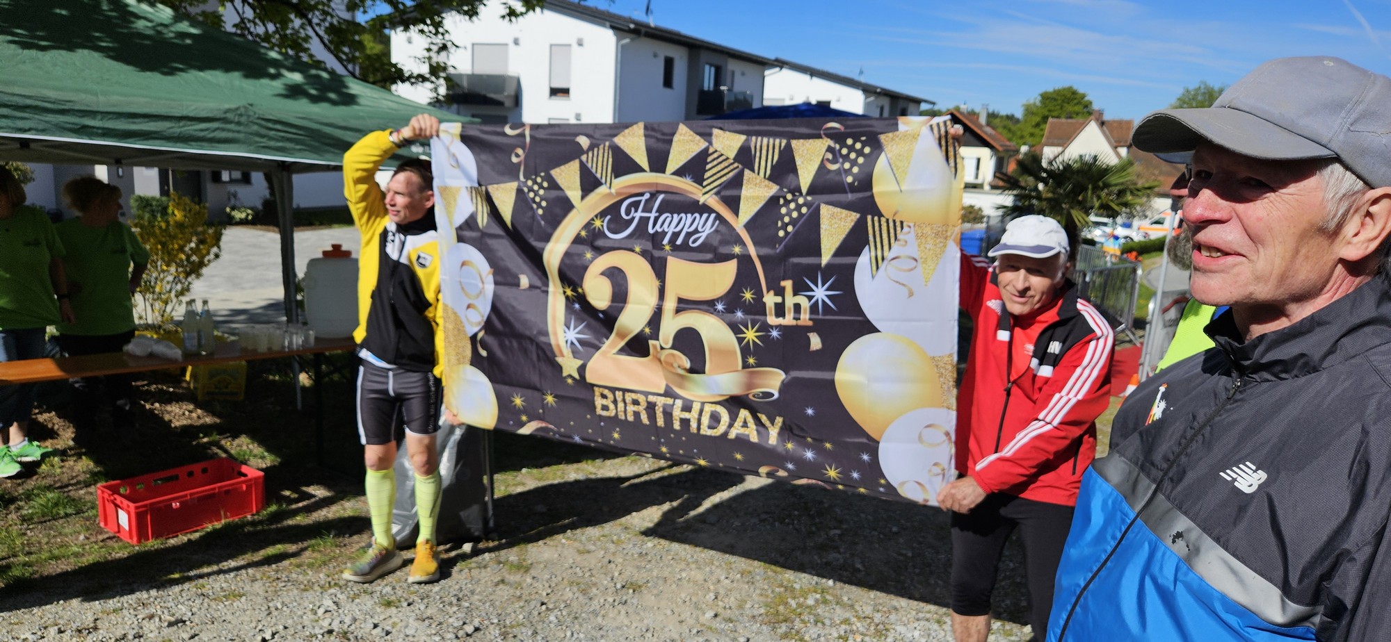 Vor dem ersten Start gab es deshalb eine kleine Ehrenansprache mit Jubiläumsbanner und auch eine Ehrentafel der mit Zeitungsartikel der letzten 25 Jahre war aufgestellt. Deshalb erst einmal.